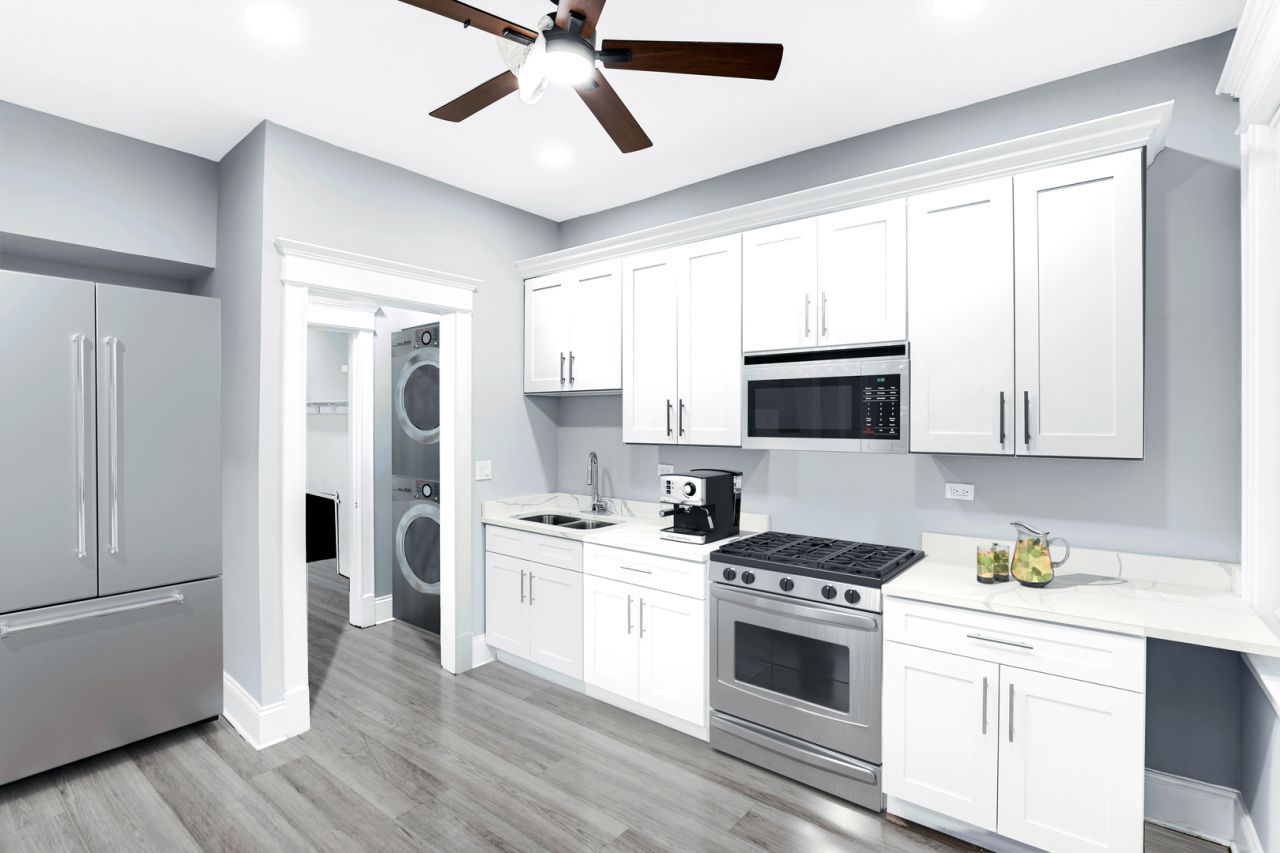 Spacious and oversized 2BD/1BA in a classic Washington Park greystone on historic Indiana Ave offering approximately 1,200 sq ft of bright, functional living space (First Floor Apartment!). The layout features a large living room, a separate dining room, and generously sized bedrooms that provide the kind of space that's hard to find at this price point. The units have mid-tier renovations and updates-clean, well-maintained, and functional rather than high-end luxury-with original older trim that adds character and charm. The apartment includes a washer and dryer and will come with new appliances, even if current photos do not yet reflect the updated appliance package. Overall, the unit offers a lot of space, practical updates, and comfortable living in a classic greystone setting. Water is included in the rent, while tenants pay their own heat and electricity as each unit has its own furnace and electrical service. The building is professionally managed with ongoing improvements as ownership continues investing in the property; garage parking is expected to be available mid-summer. Conveniently located near Washington Park, public transportation, shopping, dining, Hyde Park, and the lakefront, this is a great option for renters seeking space, character, and value on the South Side. Application is $40.00 per applicant (non-refundable) and covers required credit and background checks; income verification will also be performed. No security deposit is required. On move-in day, a prorated first month's rent plus a $450 non-refundable move-in fee are due. Generally we look for a minimum 650 credit score and income at least 2.5 times the rent. Section 8 vouchers are welcome. Tenants must maintain renter's insurance and lease protection insurance throughout the lease term.